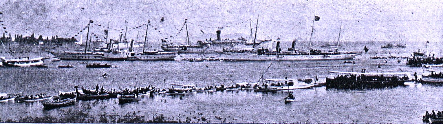 Hamidiye kruvazörünün avdetinden sonra ahali tarafından sandallarla istikbaline gidiliyor.